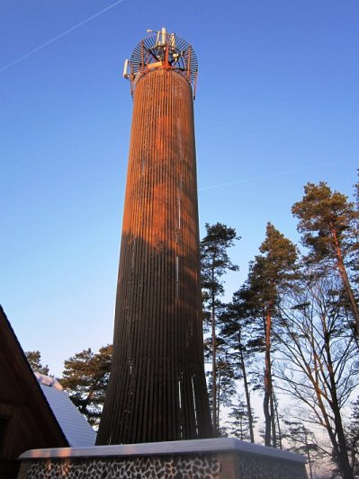 Další zastávkou je výstup na Slavíček (535 m). Tentokrát ale přináší zklamání – slibovaná vyhlídka je zakryta stromy, sáňkuji tedy zpět na hlavní trasu s nadějí, že se výhledů dočkám na příští zastávce – rozhledně Na Stráži. Jakoby jsem však zapomněl, že je leden – tedy mimosezónní čas, ve kterém slušný člověk může leda tak trávit čas na spirále domov – auto – hotel – sjezdovka – hospoda – auto – domov, ale nikoliv na rozhlednách. Nápis na vstupních dveřích mluví jasně – je po sezóně. Pořizuji alespoň jedno foto, ale mrzí mě to hodně, moderní stavba z roku 2011 má pozitivní reference, a jelikož je dnes slunečno určitě by nabídla pěkný pohled na okolní zamrzlé lesy a vesnice. Nezbývá než počkat na jaro.
