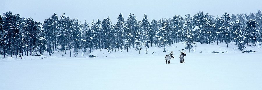 Proti větru se nedalo jít, tak jsem se posadil na saně a dal si pauzu na promyšlení následujících kroků. Kolem zrovna pochodovalo dvoučlenné stádo sobíků, a než si mě, sedícího na zasněžených saních, všimli, značně se přiblížili. Měl jsem možnost udělat pár fotek, které vyšly skvěle a na něž jsem hrd:)