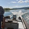Brzký budíček zvládám a v 9:45, stanuvše na břehu jezera, už vidím jak se ke mě blíží motorový člun. Z něj skáče na písčitou pláž hoch co jde z Abiska, má vojenskou výbavu a vypadá ok. Prohodíme pár slov a loučíme se. Nastupuju na člun, zdravím asi 40ti letého vidláka v kšiltovce co řídí. On nereaguje, pouze něco žvýká a točí kormidlem. Na palubě je se mnou pes - starý kříženec husky a čivavy nebo co. Vůbec si mě nevšímá, na pohlazení nereaguje, pouze se kochá plavbou - chová se stejně jako jeho páníček za kormidlem. Po 20ti minutách jsme na druhém břehu - v rybářské osadě Vuonatjviken (asi 4 sruby) a já se ptám na cenu, chce 400 SEK!!! Mazec, nejsem ani v polovině cesty a zbývá mi 60 SEK v cashi.Jdu 9 km džunglí, kolem jezer, přes potoky a jsem hotovej. Kempuju. Únava z minulých 11ti dnů je znát. Dávám šlofíka a jdu na ryby - jednu hodinu se snažím chytnout na pytlačku cokoliv živého. Potok, kde rybařím je vzdálen asi 1 km od mého kempu. Rybařím bez úspěchu, přes noc nechávám nahozené 2 návnady a jdu spát. Třeba se do rána něco chytne...